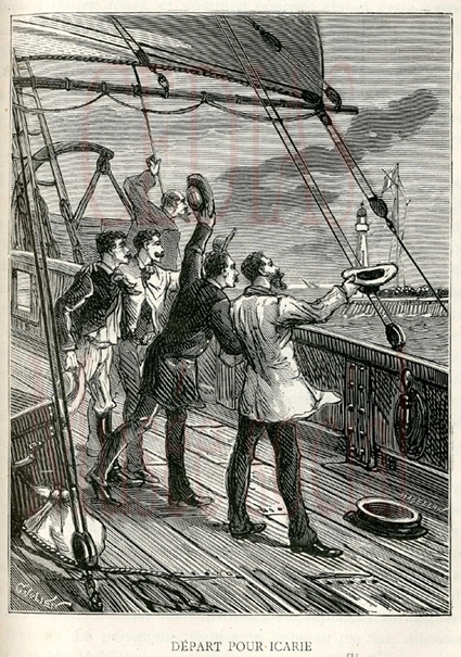 Départ pour Icarie (auteur non identifié, illustration d'un article paru sur le blog du Denton County Office of History and Culture le 25/05/2018)